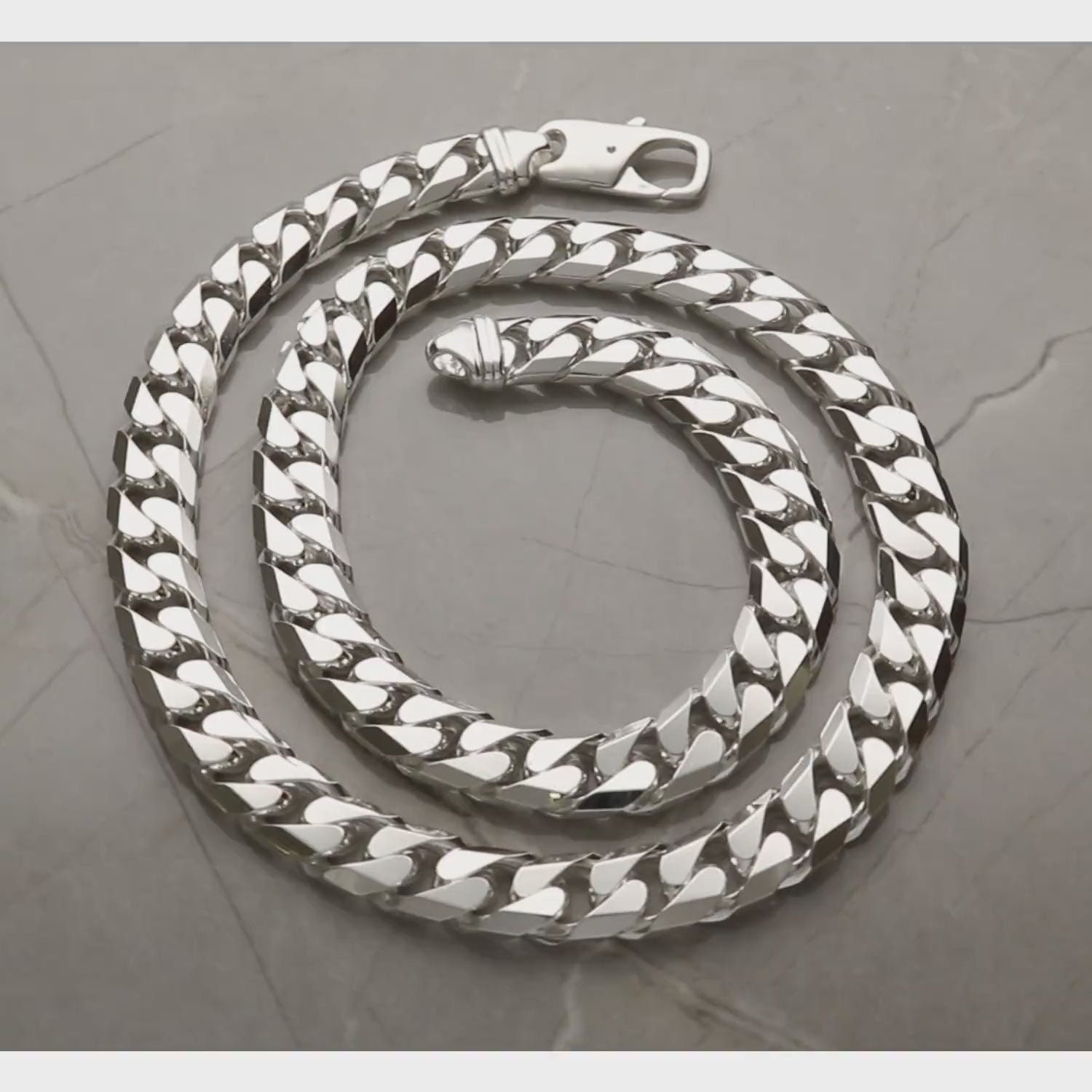 This chunky 11mm curb chain, diamond cut and finished with smooth rounded edges, will grace the neck of any man. This, being our thickest and heaviest chain, is designed to give a stunning look to men who like to feel the weight of their jewellery. Makes the ideal heavy silver chain gift.