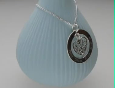 Personalise this exquisite family pendant featuring an intricately cut out filigree style tree of life design within a free moving hanging heart. The surrounding ring can be engraved with up to 5 names of those dear to the wearer's heart.