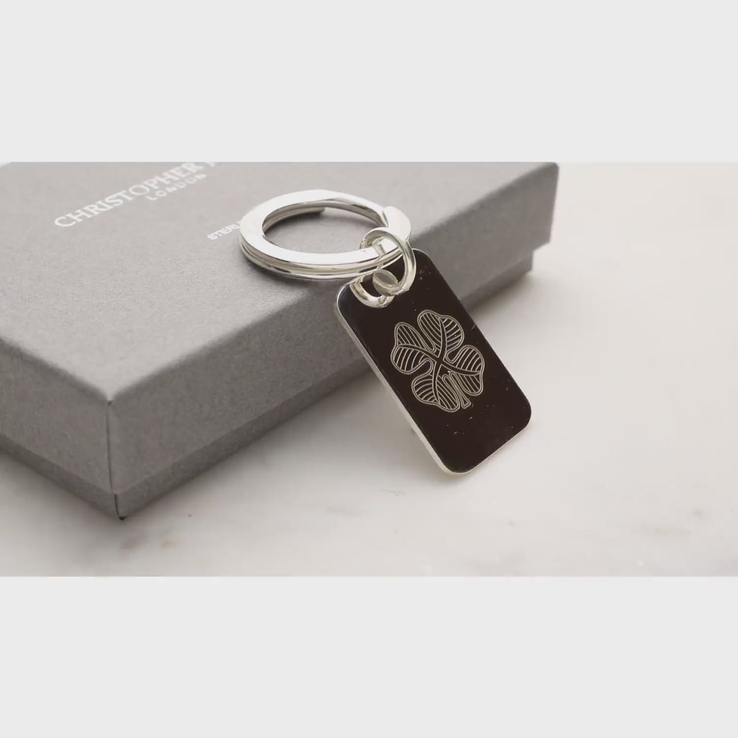 Sterling Silver Four Leaf Clover Keyring With Optional Engraving